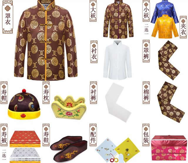其实像在古代,大家都是亲手给老人缝制寿衣,这个扣子确实是不带的,他们会用一条比较长的带子来代替这个纽扣,因为可能大家觉得这个扣子的谐音啊,会影响子孙后代。